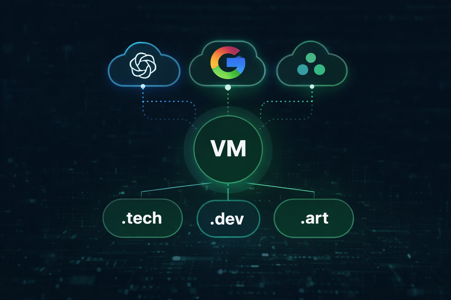 Какой бы путь вы ни выбрали, один аккаунт, общая память, единый биллинг и связанный контекст путешествуют между `.tech`, `.dev` и `.art`.